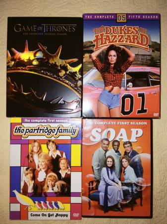 TV shows like Game Of Thrones, Sons Of Anarchy, The Walking Dead, Hunter, Rockford Files, Dukes Of Hazard, Magnum PI, Frasier, Barney Miller etc. for $5 each.