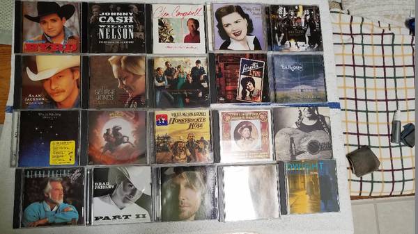 I have this collection of 20 country music CDs. Tracy Byrd Johnny Cash Glen Campbell Patsy Cline Dixie Chicks Alan Jackson George Jones... Willie Nelson... All for $20 or 3 for $5