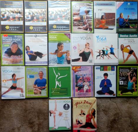 Collection of Fitness and Yoga DVDs, approx. 60+ titles. Must take all. See both photos #1-2. They have not been checked. Proceeds benefit the Friends of the Sacramento Public Library. $10 EXACT CASH.