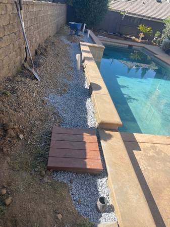 flagstone, fences, pavers, retaining walls, drainage valves sprinkles any water system artificial turf natural grass, landscape lighting demolition clean ups, gutters, any landscape service please feel free to call or text me anytime thank you