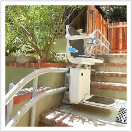 Stairlift, lift chair, stairchair, chairstair, liftchair stairway staircase glide bruno elan elite outdoor exterior outside curve handicare freecurve cre2110 2000 1025 homelift xclusive exclusive handicare handycare handy-care handi-care 950 1000 acorn 130 80 stannah compare to Gamburd Looks electropedic electroease aamcare los angeles stairlifts