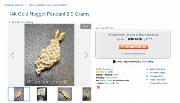 New Items Added Daily! Peace Dollars, Morgans, Gems, Jewelry, Gold, Silver Bullion. Gems, Coins, Rings, etc. To get upcoming auctions, text ncauctions to 888-841-4382. Email or text with questions (619) 787-4906 We help local Collectors, business and charities generate capital.