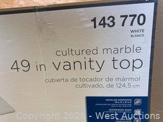 Best Offer for this Glacier Bay 49 in. W x 22 in. D Cultured Marble White Round Single Sink Vanity Top in White - $159 Retail Value.