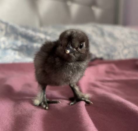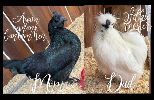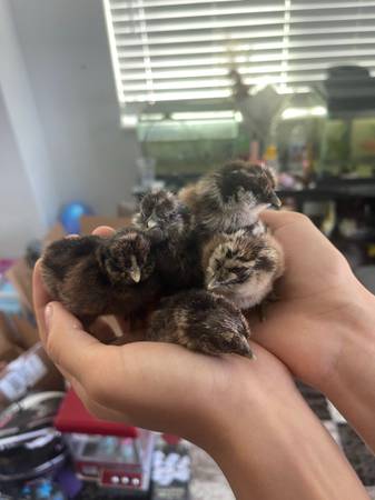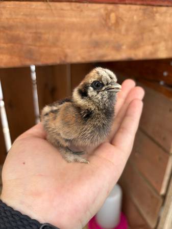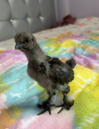 .:Selling cute mini chicks:. ✨All have feathered legs✨plus extra toes •Breeds: kikiriki, silkie, ameraucana, ayam cemani bantam, they are all mix breeds• ✨Colors: silver partridge, blue, double...