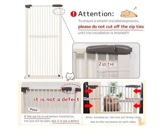 【Double Locking Mechanism for Added Protection】 Featuring a double-locking system, this gate offers extra security by preventing your pets or babies from easily opening it. Whether used as a tall baby gate or dog gates for doorways extra wide, the locking system ensures your home stays safe. Its child-proof design gives parents peace of mind in areas like stairs or kitchen entrances.