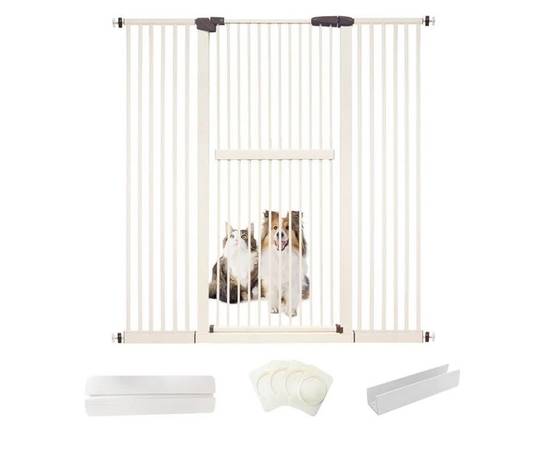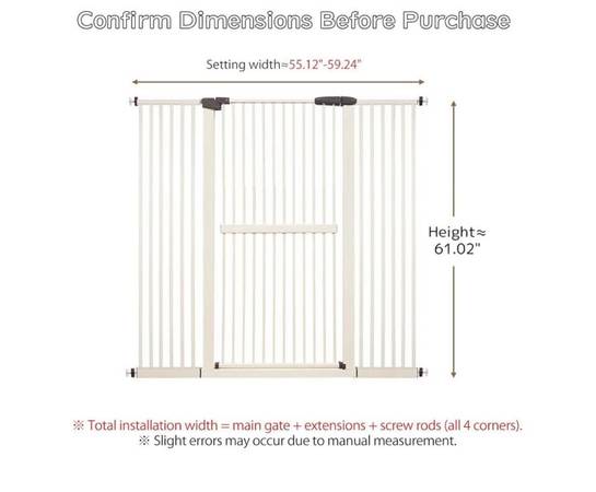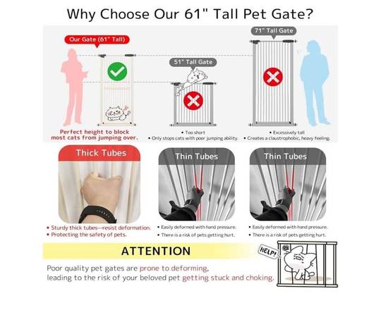 Extra Tall Cat Gate to Prevent Escaping】 Standing at 61.02", this extra tall cat gate is specifically designed to keep your cats safely contained by preventing them from jumping over. Ideal for active pets, this gate is also a tall dog gate that ensures larger dogs stay secure. Perfect as an animal gate for active areas like the kitchen or other indoor spaces.