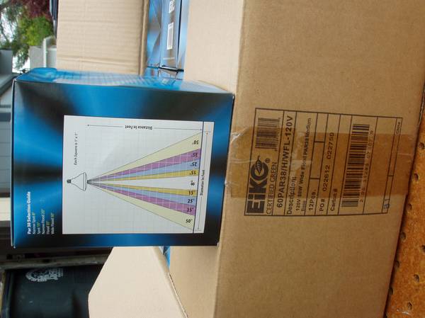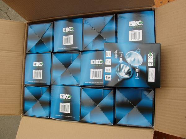 Case of 12 Eiko Par 38 lamps as shown, all are brand new. Actually have 2 cases and if both are wanted then would be $175 for both, otherwise is $100 for one case. Thank you very much!!