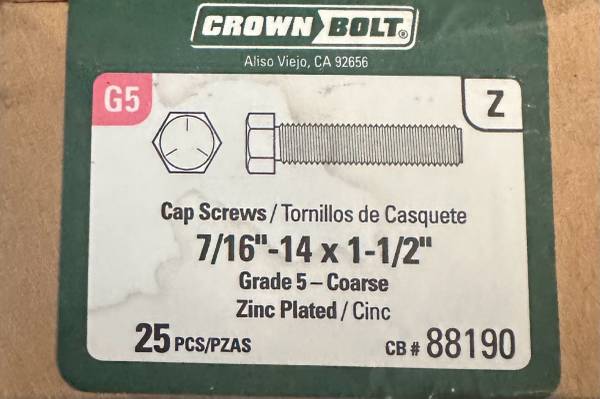 The product is a pack of 25 Grade 5 Hex Cap Screws, measuring 1-1/2 inches in length and with a thread size of 7/16-inch. Made of steel and zinc plated, these screws are designed for industrial use in various applications. The hex head style and coarse thread provide secure and durable fastening solutions. Manufactured in the United States by Crown Bolt, these high-quality fasteners are a reliable option for businesses and industrial projects.