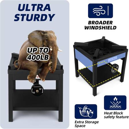 *Powerful Heating: This outdoor propane cooker delivers an impressive 270,000 BTU of high-pressure heat for efficient cooking.
