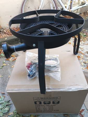 ***Features: It is a high-pressure, cast iron burner with a heavy-duty frame and detachable legs for portability. It comes with a regulator and hose for connection to a propane tank.