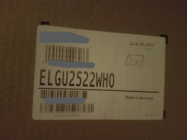 NEW in box- Elkay Quartz Classic ELGU2522WH0 Single Bowl Undermount Sink, White