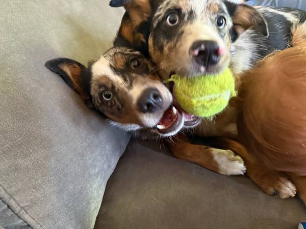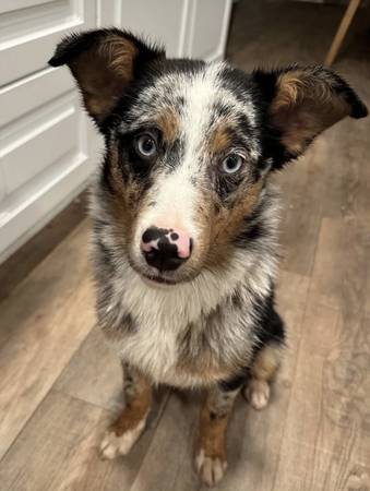 2 male Aussie Border Collie Puppies 1 year old and neutered! 300 each with full dna tests and up to date on all vaccines and flea tick and heartworm. Crate trained and potty trained! Great with young kids and cats as well as all size dogs. One 35 pounds and one 25 pounds (this one dna states mini)