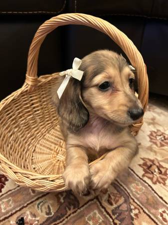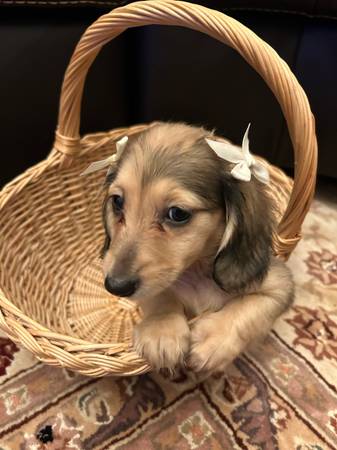 These puppies were born 09/06/2025. They are mini longhaired dachshunds. I have both male and female puppies available. Both parents have great temperaments and are very sweet and very friendly. Prior to going home, these pups will be dewormed, have their first DHPP vaccine, and they will also go to the vet for a health checkup. For more pictures and information, message me at 916-seven5seven-5two8one.