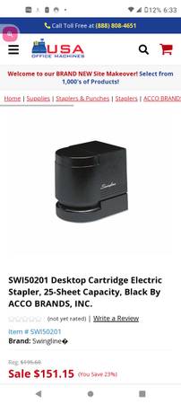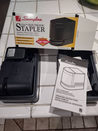Swingline 520e electric stapler, new in box. Staples up to 27 sheets. Currently "On Sale" at retail stores for $150. Call or text DeeDee at if interested.
