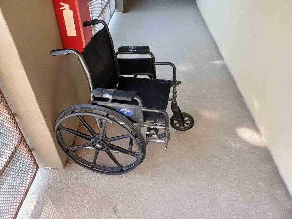 Free. If the ad is up, I still have it. One front wheel needs to be reattached and the chair lacks leg rests, thus likely uncomfortable for long periods and best for transport (e.g., to and from...