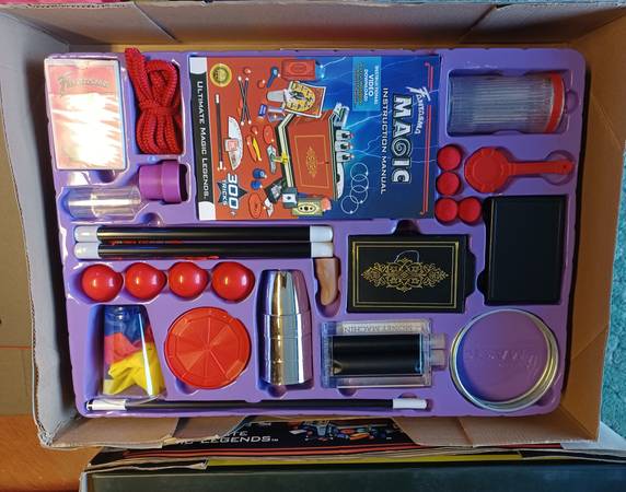 It has been opened but not all tricks have been removed for box. Some tears on outer box but still in very good condition inside. Great gift for kids. Comes with instructions