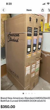 IT IS A BRAND NEW NEVER BEEN USED AMERICAN STANDARD BOTHTUB CURVED SHOWER DOOR 60X57.5 AND PLEASE SEE PICTURE