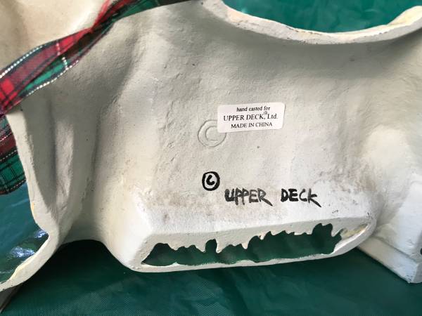 The cast iron door stopper is by Upper Deck company. It’s about 11” in length. Online it is going for $40.