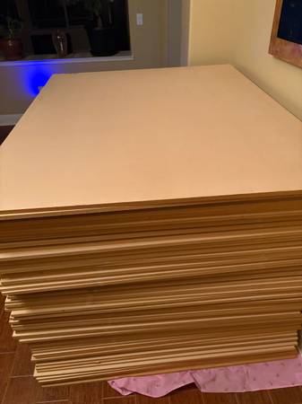 4 ft x 5 ft x 1/2 inch thick brand new MDF Boards for flooring and cabinets or other use. $15 each board