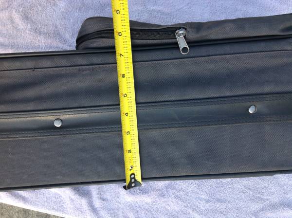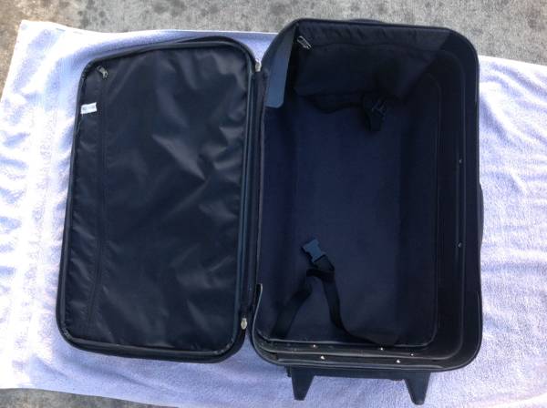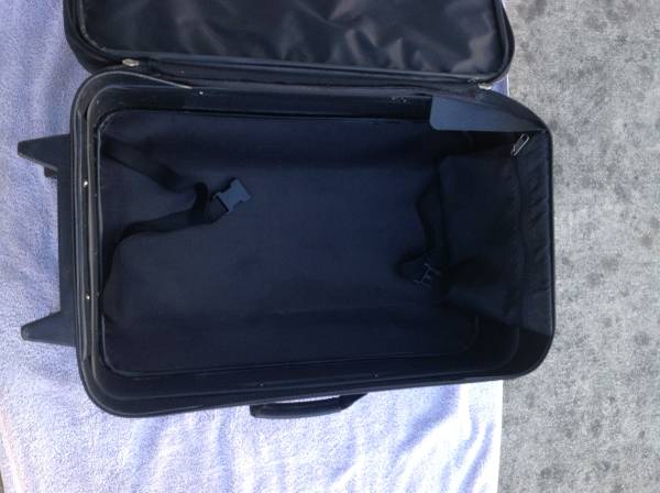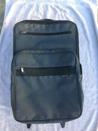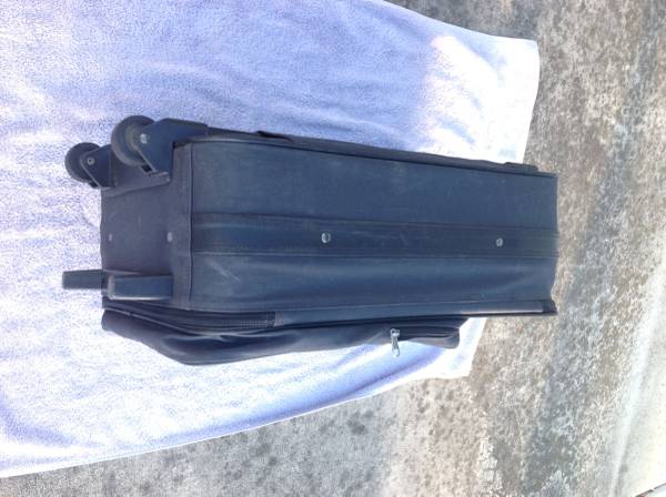 Decent condition - counting feet measures 24" tall - 14" wide - 7" deep - has compartments that expand. Has wheels and folding handle. Zippers all work. Coronado brand. Email if interested.