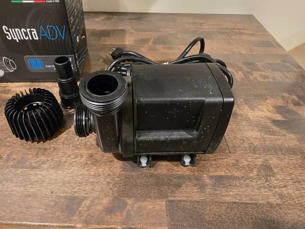 Sicce Syncra ADV Advanced 10.0 Aquarium Fish Tank Water Pump for $225. Shortly used. It works great. Only comes with the pictured fittings.