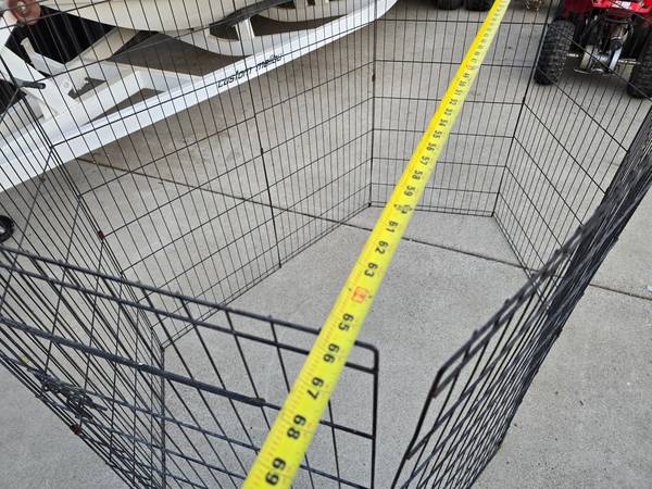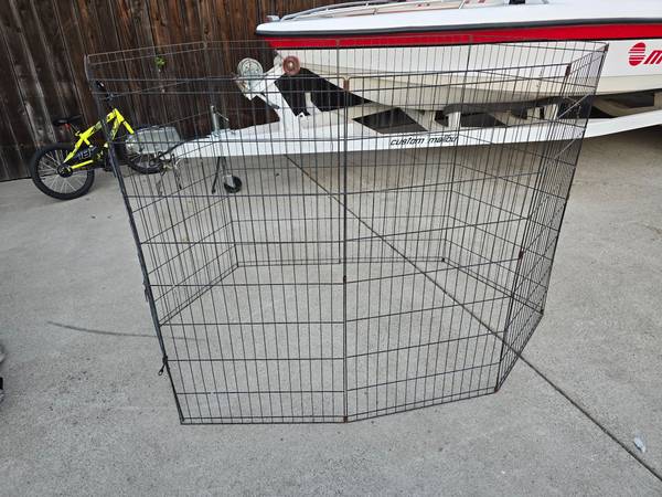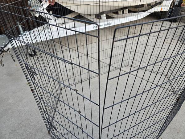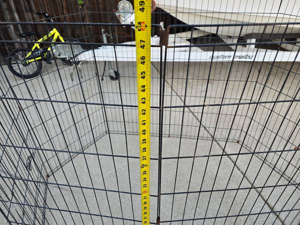 XL Tall 48" Panel Fordable Dog Playpen Kennel Crate for $40. The closing panel needs zip ties as pictured. Measures 24"x 48"H. It has normal wear and tear from being used outside.