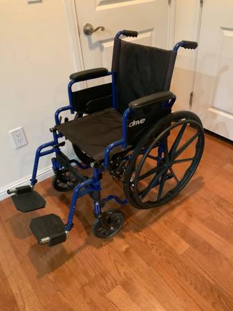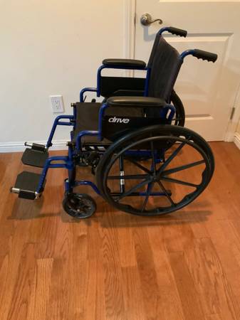 This is a quality Drive wheelchair in like new condition. The seat measures 18 inches across, the standard for an average adult. The wheelchair collapses compactly for storage or travel.