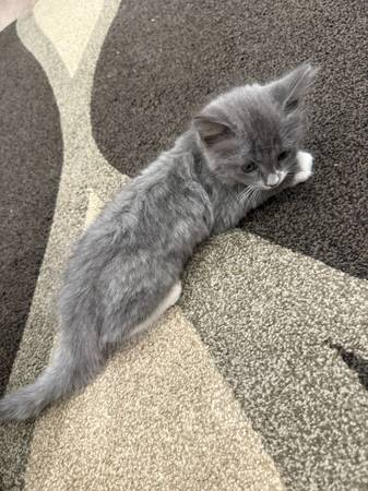 Beautiful baby cat he is a boy and he is 7 weeks old. he is litter trained and eats kibble. he is super friendly and loves kids he is also friendly with dogs(small ones not sure about big) overall he is a super sweet and playful cat if interested message me and we can set up a day for you to meet him.