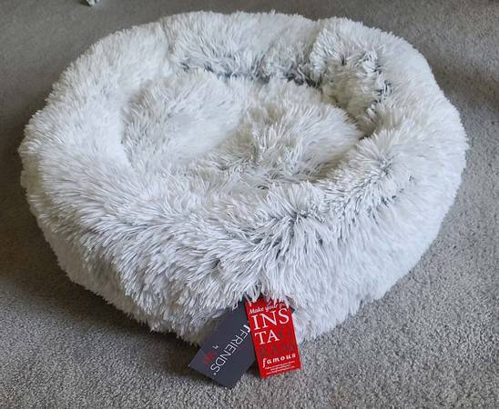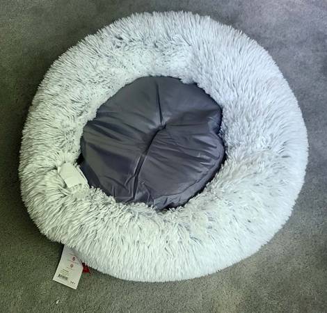 Cat, Dog Bed, Brand New 23"x23"x7" Donut Cuddler Shag Frost by Sheri - $45 (Fair Oaks)
