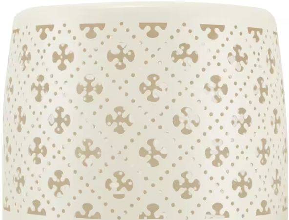 This charming chalk finish metal stool is the perfect decor for the garden or home. Its pre-distressed color and detailed cutouts produce a pleasing aesthetic. Whether used indoors or outdoors as a stool or plant stand, you are sure to love this unique furnishing.