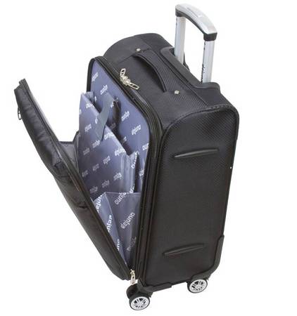 Make vacations and business trips simple with this suitcase. The telescoping trolley system allows briefcases and other bags to ride on top, so traveling by foot is that much easier.