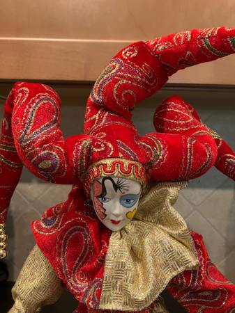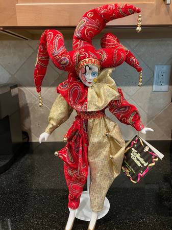 Beautiful jester, 19” tall, brand new with original tags attached, with stand. Please call or text with any questions. $55 cash. Thank you.