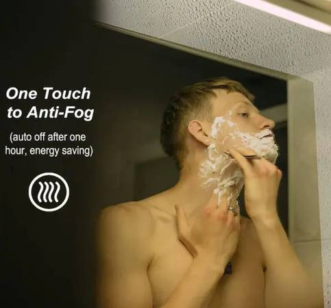 CHOOSE WHITE OR BLUE STANDBY LIGHTING OF YOUR TOUCH CONTROLS, ENJOY AUTO-SHUT-OFF OF ANTI-FOG SHOULD YOU FORGET, BRIGHTNESS MEMORY PRESETS, LAST-USE BRIGHTNESS SETTING MEMORY, DIMMABILITY, 3 COLOR CHOICES (COOL, WARM, NATURAL), HARDWIRE OR PLUG-IN HOOK-UP, EASY FRENCH-CLEAT MOUNTING EITHER VERTICALLY OR HORIZONTALLY... AND MORE!
