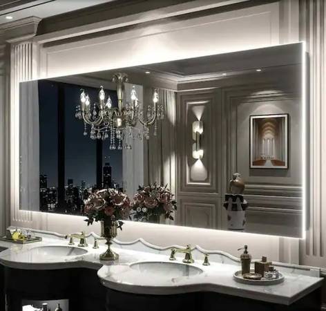 THIS BACK-LIT MIRROR IS BEAUTIFULLY "EDGE-LIT", AS WELL, PROVIDING A SUBTLE OUTLINE RATHER THAN THE 2" STRIPE WE'VE SEEN THE PAST FEW YEARS THAT, FRANKLY, IS STARTING TO FEEL JUST A LITTLE BIT MUCH ESPECIALLY FOR THOSE WHO ENJOY SUBTLE, CLASSIC BEAUTY WITH THEIR "ANTI-FOG", "LED BACK-LIT" FEATURES.