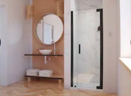DREAMLINE SHOWER DOOR. WHAT ELSE CAN I SAY? OH, IT'S MATTE BLACK. IT'S THE ELEGANCE LINE.