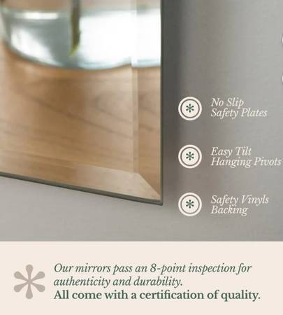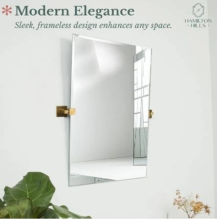 NEW IN BOX RETAILS: $200 - $500 approximate after tax depending upon retailer. VERY MODERN BEVELED TEMPERED HIGH DEFINITION PIVOTING MIRROR. HANGS IN EITHER VERTICAL OR HORIZONTAL POSITION. SOLID...
