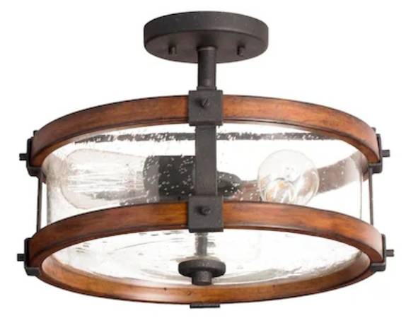 THIS IS AN INTERESTING FIXTURE IN THAT IT'S FARMHOUSE/INDUSTRIAL BUT WITH A NICE TOUCH INCLUDING THE SEEDED GLASS SHADE LINER. IT'S A PERFECT DIFFUSER AND NOT BY ACCIDENT, EITHER. KICHLER HAS BEEN AROUND A MINUTE, YOU SEE AND KNOWS A THING, OR TWO, ABOUT THE THREE THINGS PEOPLE CONSIDER IMPORTANT WHEN CHOOSING LIGHTING. ILLUMINATION, STYLE AND AMBIENCE, IN NO PARTICULAR ORDER, ARE WHAT KICHLER DOES BEST.