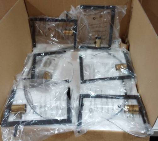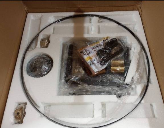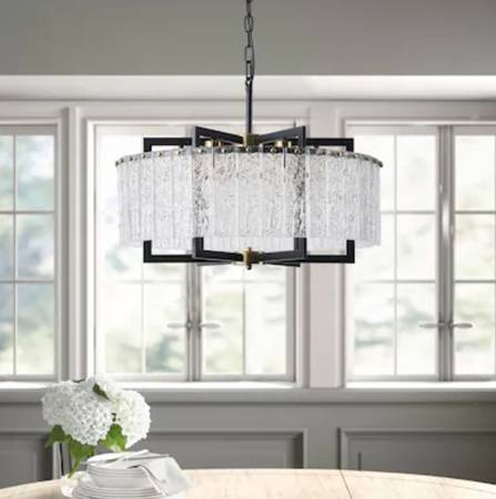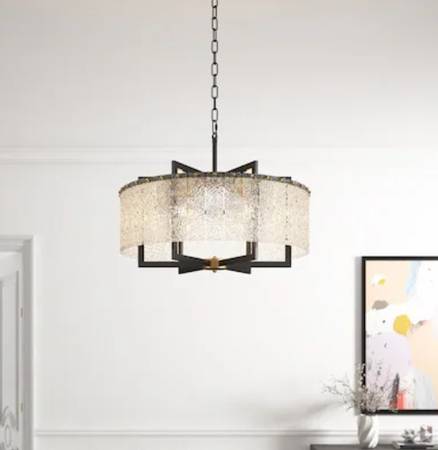 NEW IN BOX CRYSTAL PLATES WRAP A MATTE BLACK AND GOLD MODERN FRAME OF THIS OVERSIZE CHANDELIER WILL DAZZLE THE EYE OF ALL.WHO BEHOLD. SEE MANY MORE BEAUTIFUL LIGHTING FIXTURES TO BRIGHTEN YOUR HOME...