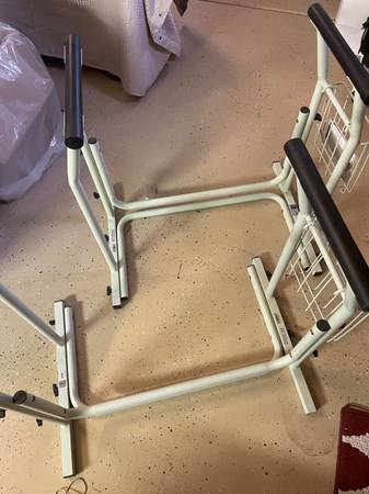 Two drive medical stand alone toilet safety rails. Used after I had my back surgery. Both like new. • Fits standard and elongated toilets • Comes with padded armrests for added comfort • Free-standing around toilet • • Comes with convenient magazine rack • Actual Product Weight: 9 Lbs • Overall Product Height: 25.5" • Overall Product Length: 19" I am in the Teal area of Lincoln close to Foskett Ranch Park off Joiner. They are assembled can be adjusted to your height.