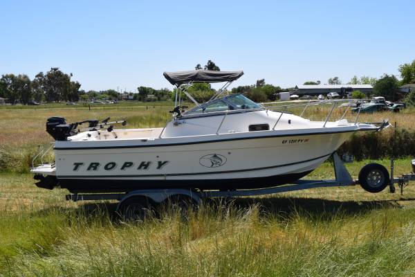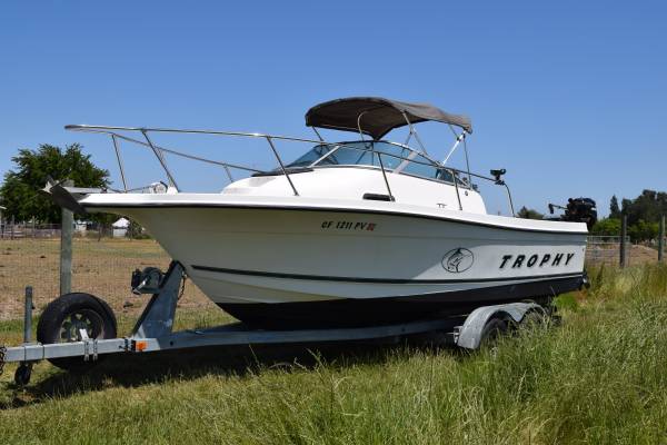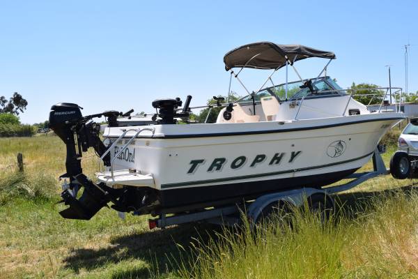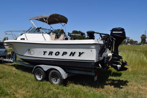 2001 Trophy 2052 walk around fishing boat V6 mercruiser engine, mercruiser outdrive, 239 hours. Excellent condition, runs excellent , 9,9 hp mercury trolling motor with electric controll , electric steer. new downriggers, hook7 gps fishfinder. new bottom paint, ready for bay, lake , rivers fishing. Galvanized trailer good condition. Interested in trade for diesel excursion, or diesel f250 or 350