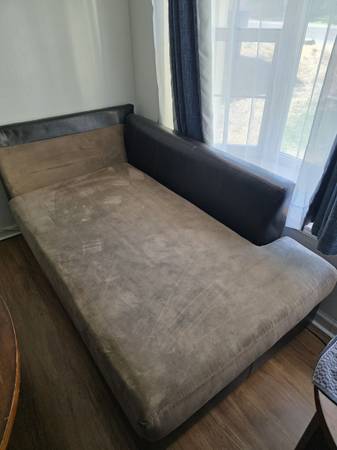 L shaped sectional couches for sale . In great shape no tears or stains , from a non smoking house . Getting rid of them to have extra room . They lock together to form an L shape . 75.00 today