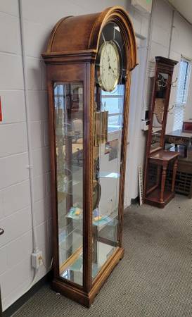 Hello we are selling a howard miller grandfather clock with curio , it is in good condition. Schedule appointment by email.