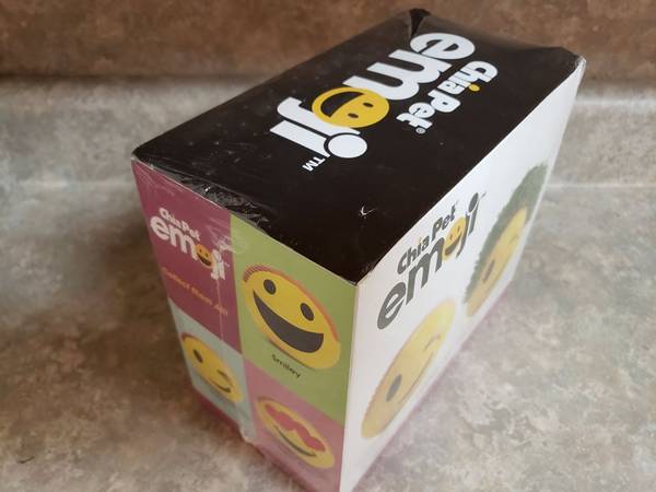 Chia Pet Emoji Winky with Seed Pack, Decorative Pottery Planter, Easy to Do and Fun to Grow, Novelty Gift, Perfect for Any Occasion - NEW IN BOX! Never been opened, however, there is a small tear in the shrink wrap and the box has a couple dents.