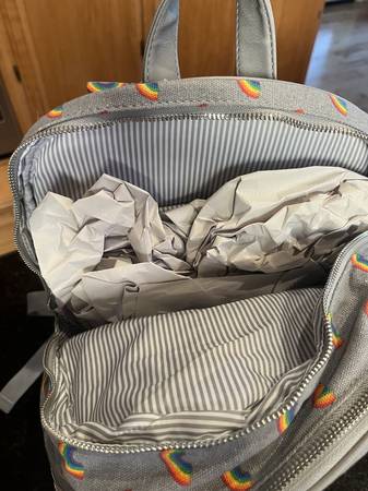 We are selling a NOBO No Boundries Gray Cotton Backpack With Rainbows. This backpack is NEW with Tags. If your interested please respond to this ad or text me. Thank you