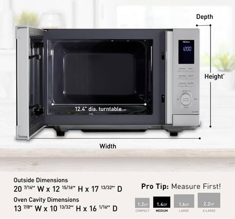 Spacious Interior, Sleek Exterior: Ready to take center stage in your kitchen with a premium stainless steel face and dial control plus large 1.4 cu ft interior
