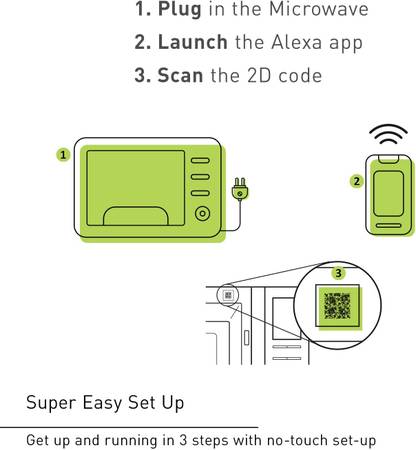 Super Easy Setup: Just plug in the microwave, launch the Alexa app, link your Amazon account then scan the 2D bar code and follow prompts to start cooking