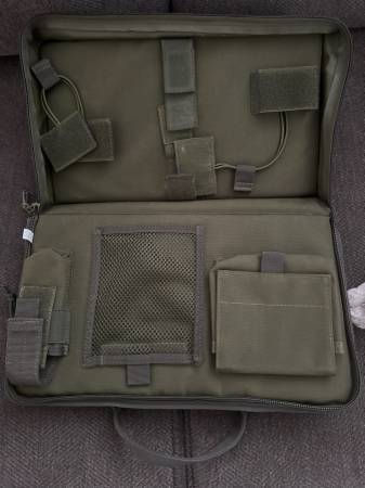 The OD green Loaded Gear RX-50 16" Tactical Pistol Bag from Barska is built to provide protection for your firearm. The RX-50 is heavily padded for extra protection for transport or storage. It also features a strong carrying handle and additional pockets for accessories.