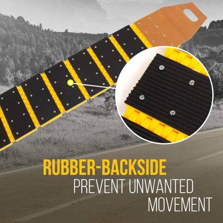 9. 8 FEET LENGTH: Its total unrolled size measures 9. 8 foot length by 9-inch width by 2-inch height perfect for single lane placement. Hump efficiently controls vehicle speeds and eliminates maintenance problems associated w/ permanent speed bumps