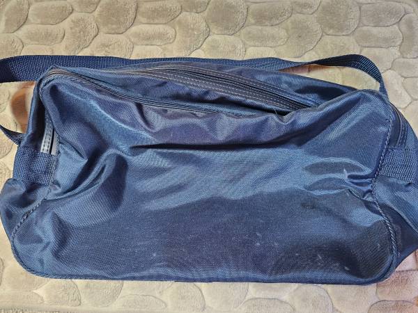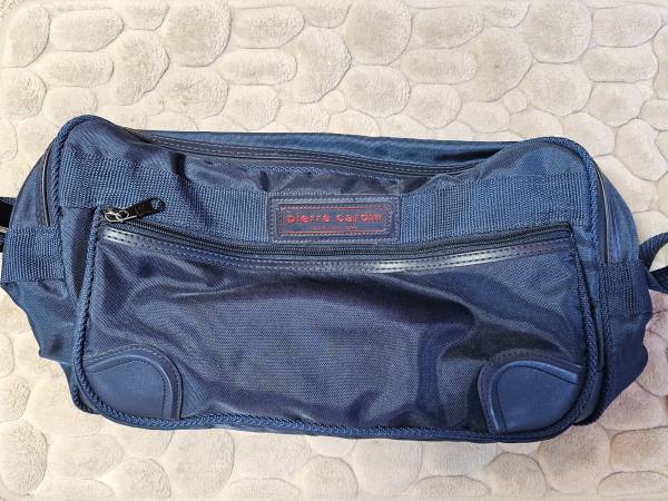 Vintage navy blue Pierre Cardin small duffle bag/carry on. Outside zippered compartment. Solid bottom with hard rubber feet on the bottom to protect your bag when set on the floor. Adjustable carry strap. Perfect for a weekend getaway!