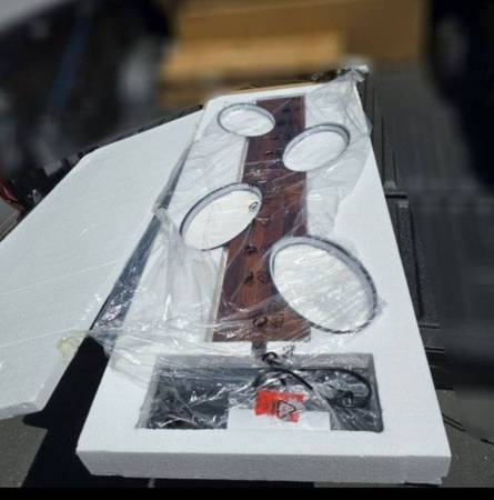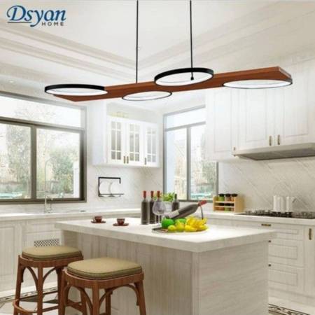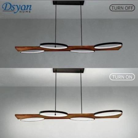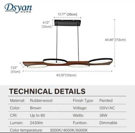 43inch LED Farmhouse Chandelier,Modern Large Chandelier,4 Rings,Dimmable Pendent Light with Remote Control,3000-6000K,Solid Wood Chandelier Light Fixtures for Kitchen,Office, Living Room